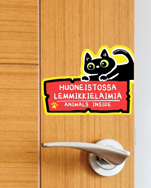 Huoneistossa lemmikkieläimiä tarra. Musta kissa